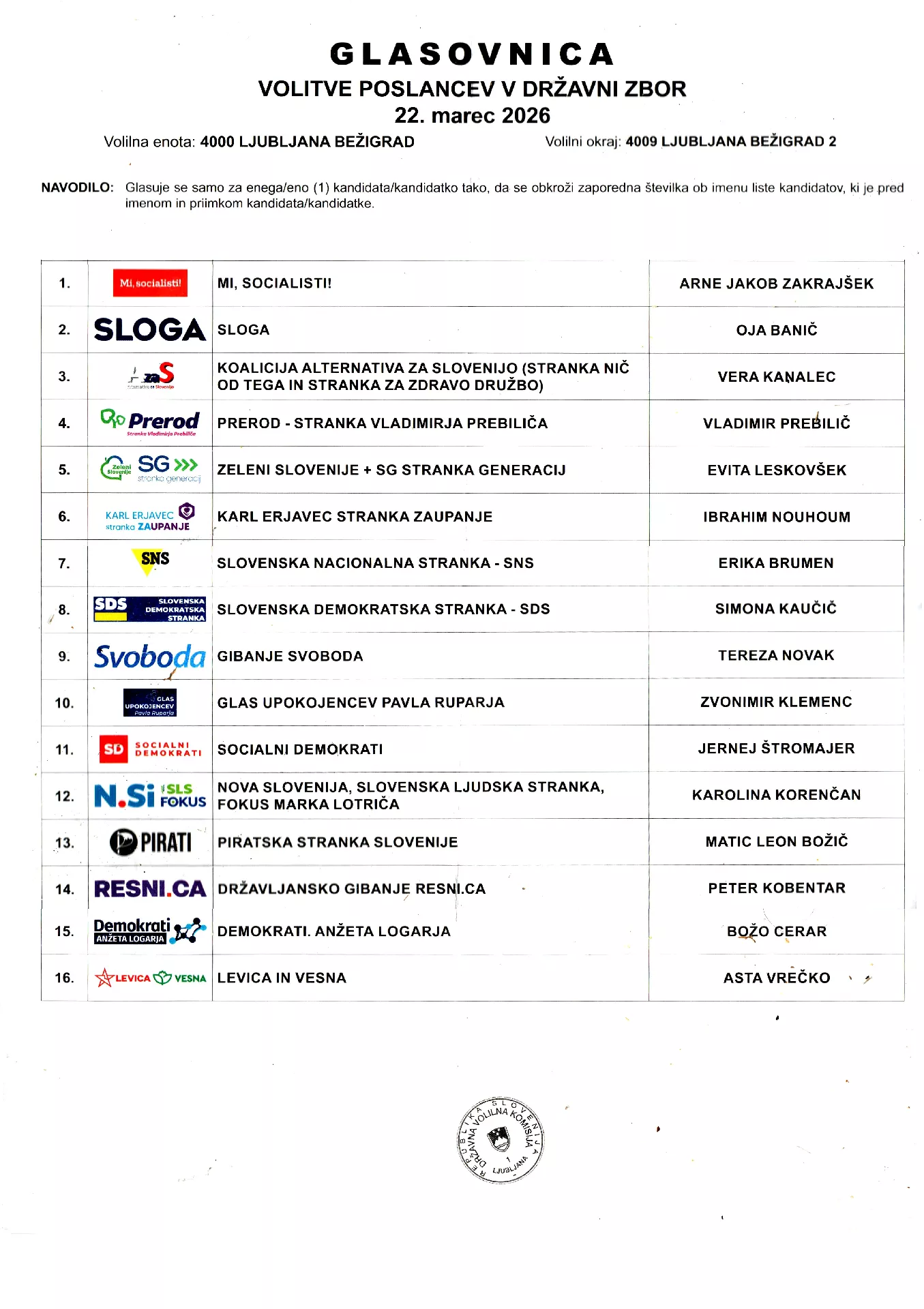 Iz glasovnice volitev poslancev v DZ je razvidno da smo 22.3.2026 volili konkretno osebo z imenom in priimkom, vsak volivec je volil v samo enem Volilnem okraju.
